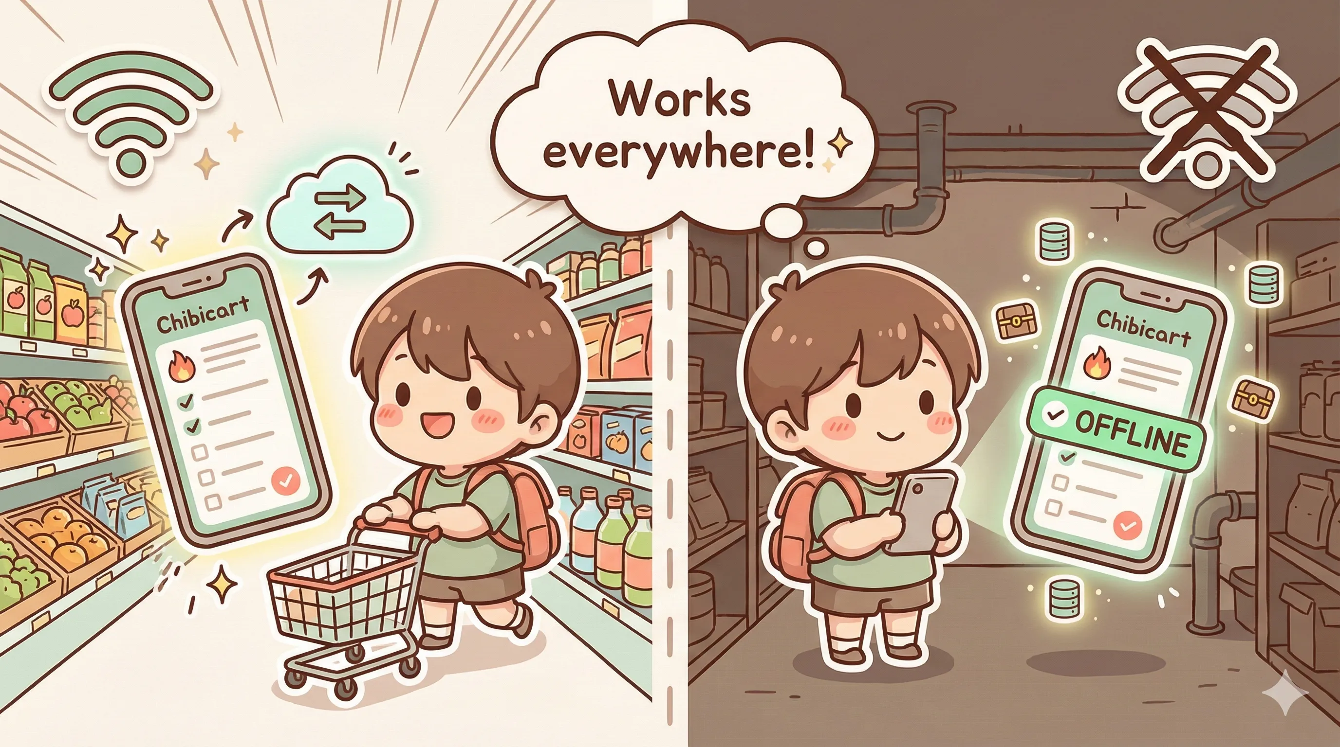 This is exactly why we built ChibiCart as an offline-first app. Your shopping list should be available the moment you need it—zero network required.